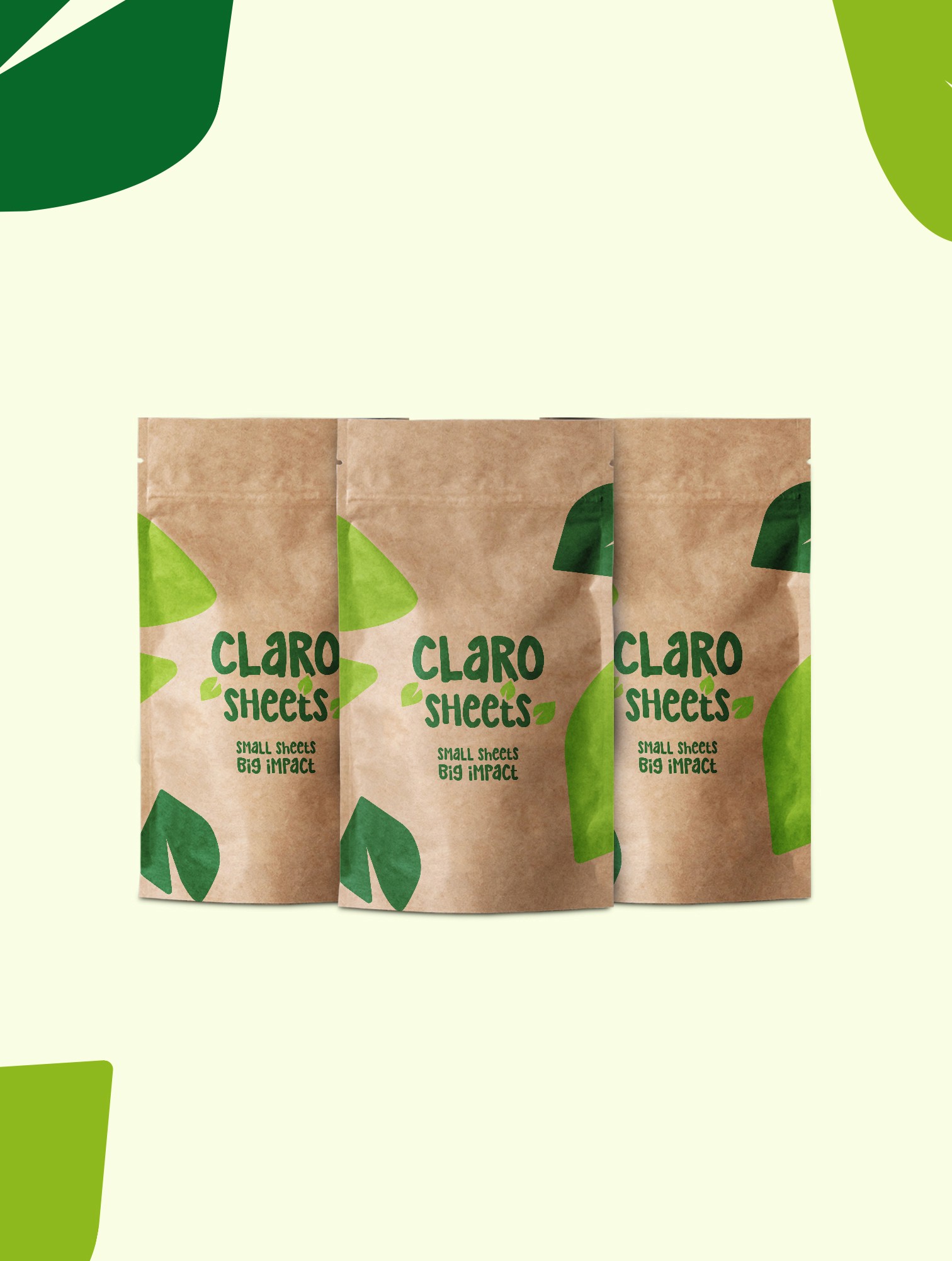 Claro Sheets is an eco-focused laundry brand built around sustainable laundry sheets as a cleaner alternative to traditional detergents. The project focused on packaging and visual design that clearly communicates “green”, natural, and responsible at first glance.