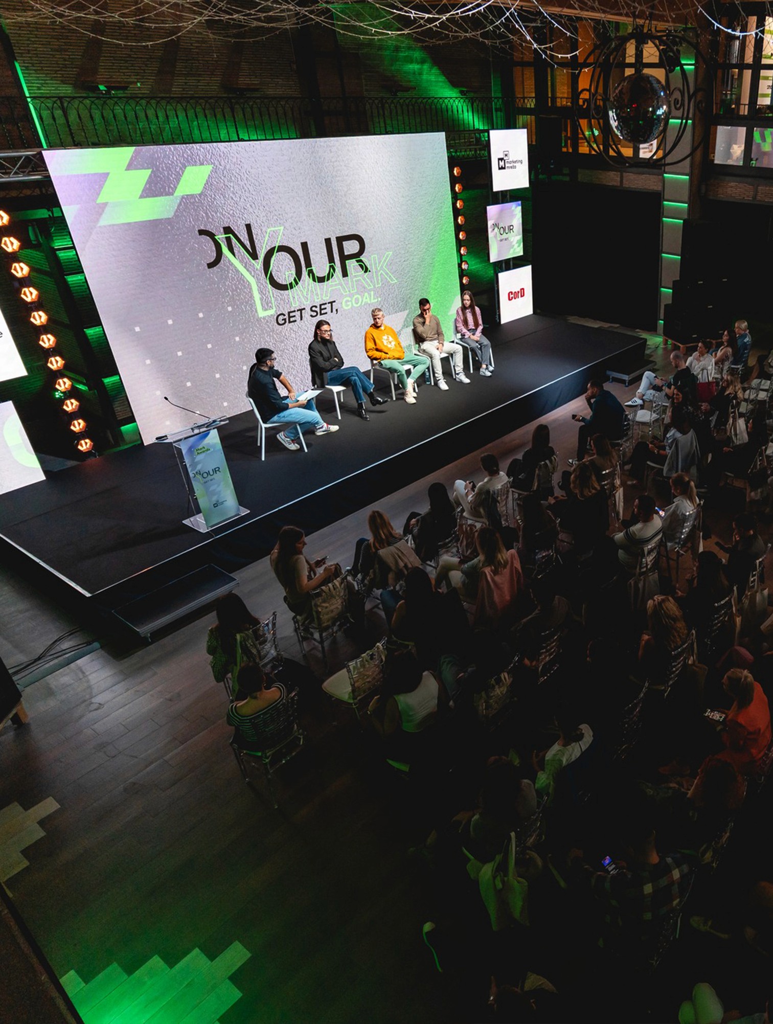 The visual direction focuses on clarity, energy, and forward motion, using sharp geometric forms, layered textures, and a bold green accent to signal growth, ambition, and progress. The identity was designed to feel contemporary and dynamic, while remaining flexible for use across the event website, promotional materials, and digital assets.
